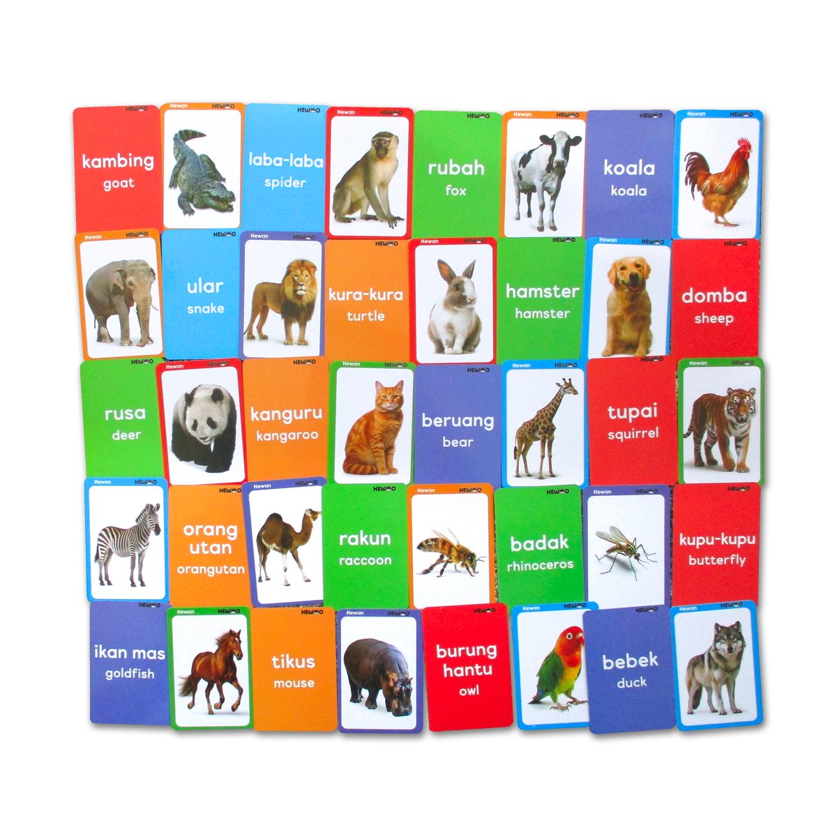 - Berisi 40 colourful cards (Berisi Pengenalan hewan menggunakan 2 bahasa (Indonesia & Inggris))