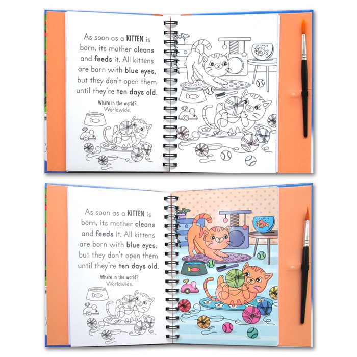 Cukup siapkan kuas dan air saja! Basahi kuasnya, kuas-kuaskan ke gambarnya dan tadaaaa.... Ajaib!! Gambarnya akan jadi berwarna looh!! (Sudah include kuas).