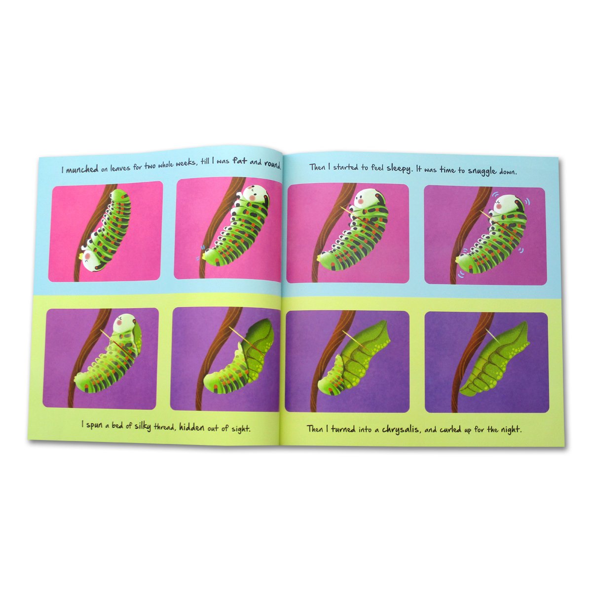 Berisi cerita yang simple tentang bagaimana Caterpillar berubah menjadi kupu-kupu yang indah.