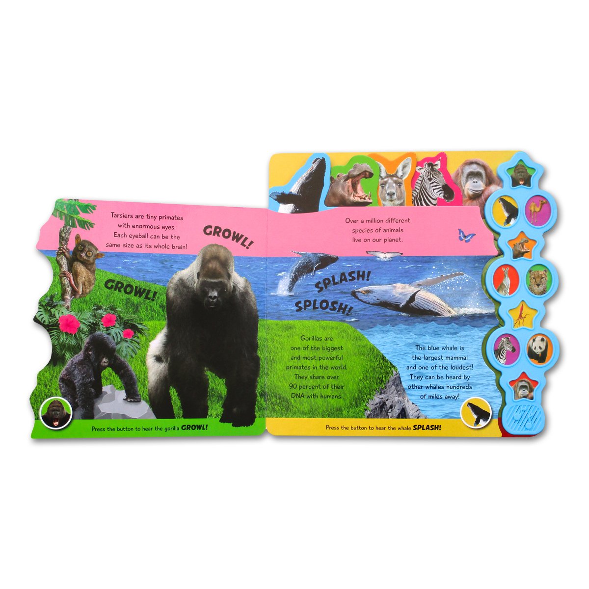 Ada 10 sound buttons: gorilla, blue whale, camel, hippo,cheetah dll