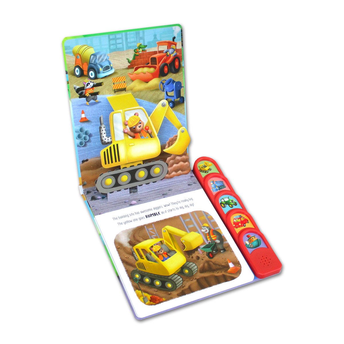 Berisi cerita kegiatan-kegiatan seru tentang kendaraan seperti diggers, blue train, tractor dll
