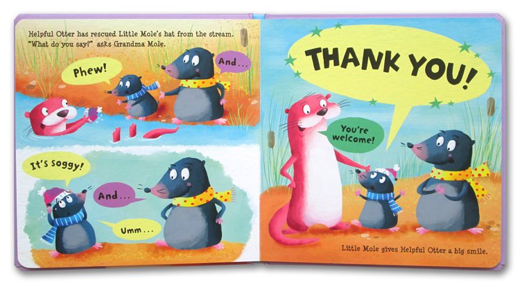 When someone does something kind, it's important to remember to say "thank you"! Join the animals in this story as they all learn two small words that make a big difference.