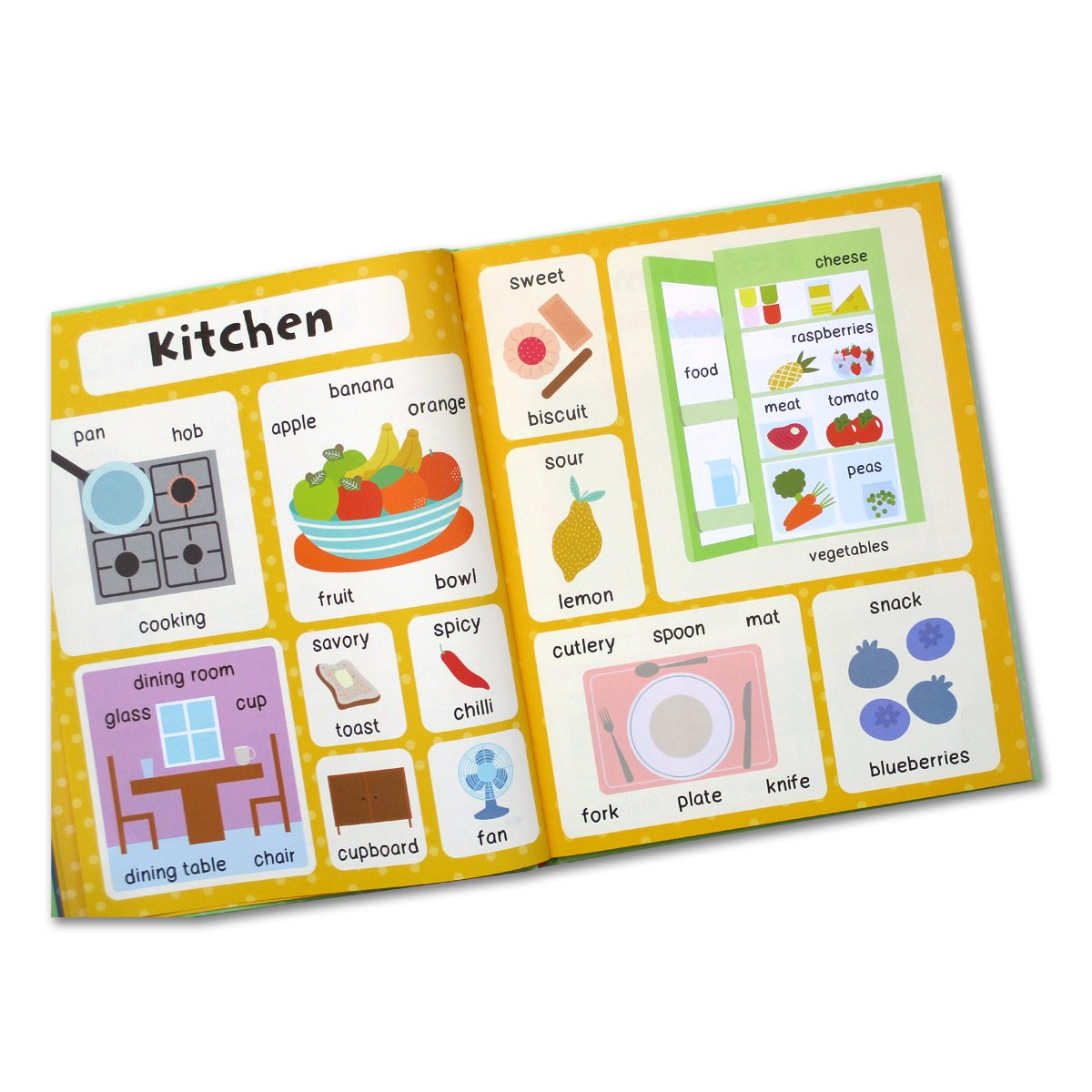 Berisi 1000 kosa kata bahasa inggris di sekitar kita beserta namanya. Sangat bagus untuk mengenalkan new vocab ke anak.