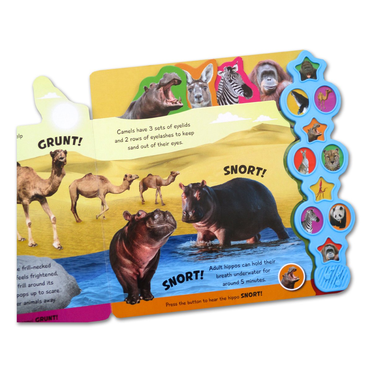 Ada 10 sound buttons: gorilla, blue whale, camel, hippo,cheetah dll