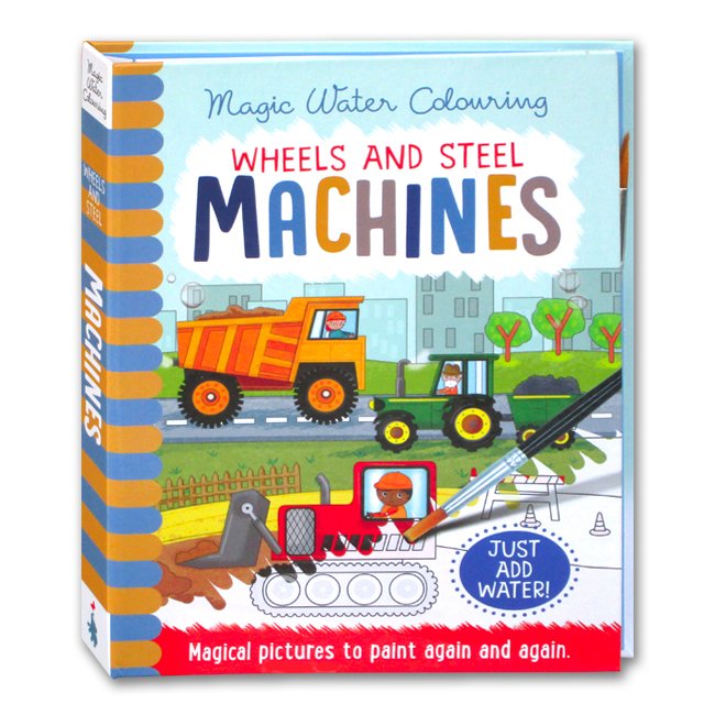 Book Title : Wheels and Steel Machines Magic Water Colouring (Magical Pictures to Paint Again and Again. Just Add Water!)